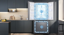 The anti- fingerprint finish minimises fingerprints on the external surfaces of the fridge, and can easily be wiped away to keep it looking neat. Inside, the big bottle door bins offer plenty of space for family-sized jugs of milk or juice. And you can stock up on fresh produce with the large crispers. The LED lighting brightly illuminates every corner for greater visibility. The freezer drawers underneath makes it easy to organise your frozen food with easy slide-out access.