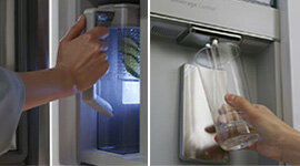 The clever door-in-door design allows quick access to a handy and hygienic Beverage Centre including the 1.4L auto-fill water jug, water dispenser and drinks storage - providing function without the mess.