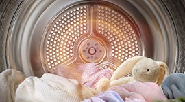 Optimal Dry technology uses three sensors to monitor humidity and temperature, automatically adjusting drying times for improved efficiency. Hygiene Care uses high heat to sanitise laundry, while Wrinkle Prevent intermittently tumbles clothes after drying to reduce creases. For smaller loads, Quick Dry can have clothes ready in just 35 minutes.