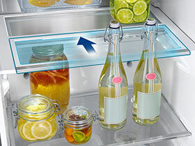 The Slide & Fold shelf adds flexibility to your storage requirements. It slides in and out and can be easily folded to fit various sized items, including large and bulky containers, for maximum space efficiency.