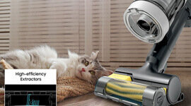 At the heart of the vacuum is Samsung’s HexaJet Motor, producing up to 280 watts of suction. From hard flooring to soft rugs, it handles dust, hair and fine particles with ease. The AI Cleaning Mode intuitively adjusts suction and brush speed as you move through the home, ensuring optimal results with minimal effort.