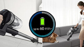 No need to rush while vacuuming! A powerful battery maintains suction for up to 60 minutes of uninterrupted cleaning. You can purchase a spare battery to extend your cleaning time to two hours.