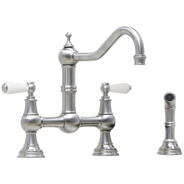 | Features | White porcelain lever handles with Shaws insignia on indices 1/4 turn German-made ceramic disc valves Vernier insert for accurate handle alignment Extended length flexible connectors for easy installation Supplied with 15mm double check valves Unique handle construction with integral bearing ring 360° rotating spout Perfect match to Shaws fireclay sinks |