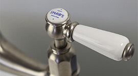 An elegant white porcelain handle with the Shaws insignia allows easy, precise temperature control through a single intuitive motion.