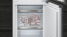 Within the 255L total capacity interior, you can adjust the variable shelves to whatever layout best suits your needs. Make room for tall bottles or comfortably fit in that delicious birthday cake. The freezer features Siemens’ bigBox compartment. This spacious compartment can easily accommodate larger items like a stack of pizzas or leftover casserole. Frost-free technology saves you time and effort by not having to manually defrost the fridge. Not only a time and effort saver, this technology helps to lower energy consumption. A helpful door alarm will let you know if you’ve accidentally left the door open.