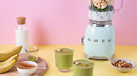 With a sleek metal body, safety features and a dishwasher-safe 1.5 litre Titan Renew jug, the Smeg 50s Style Retro Bench Blender combines style with practicality.