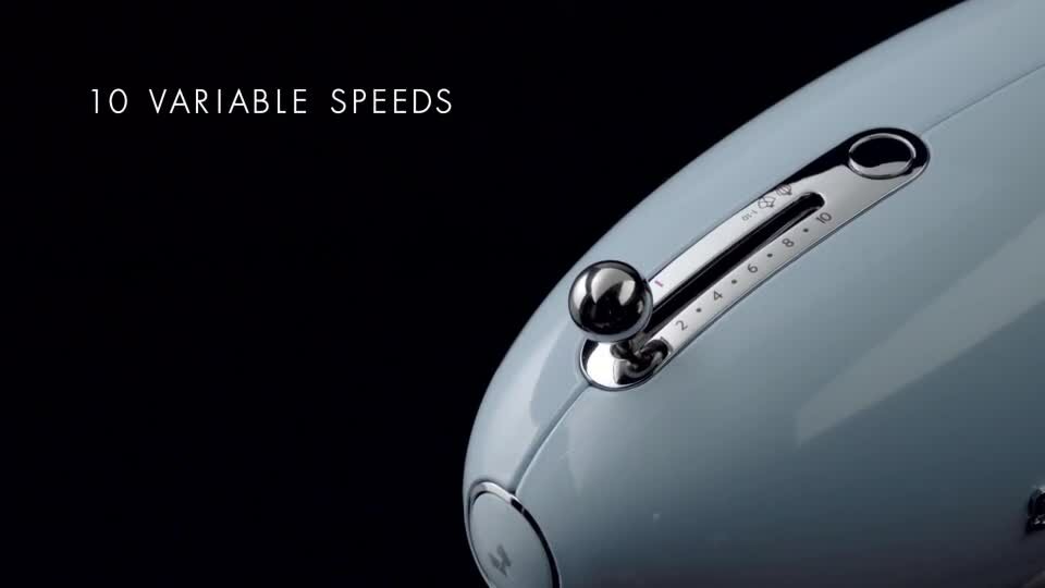 It’s not only the soft, sinuous lines that hark back to the 1950s, but also the vibrant range of colour finishes. You have the choice of gentle pastels like green and blue, bolder hues like red and black, and traditional finishes such as silver and cream. No matter your decision, this stand mixer will live on your benchtop as a cult object.