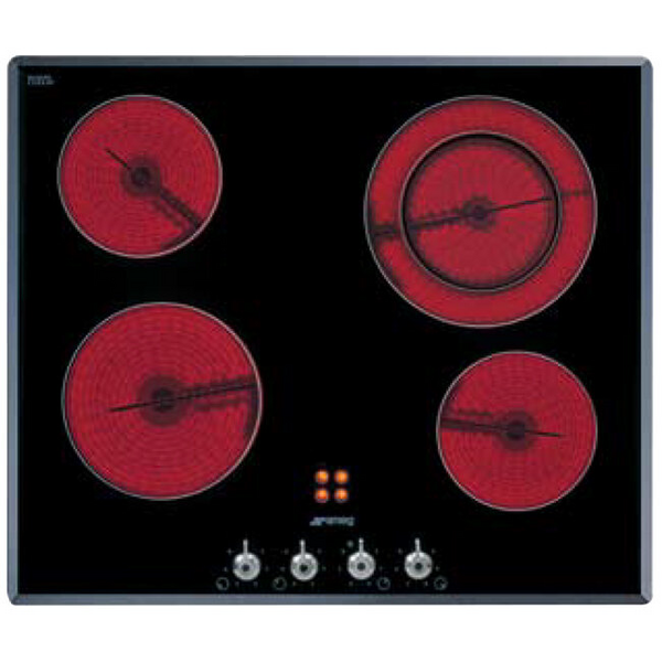 | Features | Finish Type: Black Ceramic Glass, bevelled edging with stainless Steel Canail Control Knobs. High-Speed Cooking: With visible high heat in three seconds and full heat obtained in only 7.12 seconds, economies are achieved by the time saving and the efficient fast use of energy. Extension Zone: The rear left burner has an extended cooking zone from 140 mm to 210mm with inner & outer burners. Thermostat Control: Precise and sustainable temperature (thermostat) settings are possible via the infinitely-variable controls. Residual Heat Safety: These illuminate whenever one of the four respective cooking zones has a surface temperature at or above 60 degrees Celsius. Canali Design: The architectural detail Guido Canali makes possible the matching of appliances, including the dishwasher. Extra Features: 4 x Heat Residual Indicators, Low Profile Design, Microthermic Insulation. Cooking Zones: |