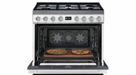 This Smeg oven is uniquely insulated and sealed with Thermoseal technology creating a stable environment for cooking which means reduced cooking times and more even temperatures. The thermoseal system also incorporates a triple-glazed glass door which helps keep your kitchen cooler during cooking - perfect for Aussie summers!