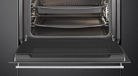 Smeg’s updated soft-close, soft-open door offers elegant, effortless access to your oven. It gently opens to 90 degrees for convenient reach and closes smoothly without slamming. Featuring a soft, silent internal glass release system, the door also makes cleaning easier, combining refined design with everyday practicality for a truly seamless kitchen experience.
