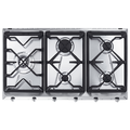 | Features | ● Spacious Design - When space is not restrictive, this wide 90cm hob offers five burners ergonomically positioned for maximum benefit, with the possibility of several styles of cooking at the one time. Also, cooked or yet to be cooked foods in their utensils are neatly contained within one safe area instead of occupying otherwise precious bench preparation or serving areas. ● Ultra-Rapid Dual Burner - Conveniently and ergonomically positioned on the left, this versatile burner, while being designed for perfect wok cooking, also suits the larger stock pots, saucepans and griddles. ● Auxiliary Burner - Perfectly situated, centre forward, this small burner enables a very low flame for the gentle simmer required for sauce reductions and low heat cooking and warming. A second auxiliary burner, capable of even lower heat simmering, is the separately controlled burner within the ultra-rapid dual control burner (wok). ● Low Maintenance - The seamless hob design allows for easy wipe-over cleaning and generous catchment of spills and accidental boilovers. The control knobs, also, are removable for cleaning access. Trivets, burner assemblies and wok stand can be washed in warm soapy water. ● Canali Design - The CIR597XS cooktop fits within a large and comprehensive range of Smeg appliances with complementing aesthetics. The architectural detail of Guido Canali makes possible the matching appliances, including the dishwasher. ● Built-in one-piece hob ● Automatic electronic ignition Cooking Zones ● Five-six gas burners, 44.3 mj/hr max ● 1 x Ultra-rapid (wok) inner: 3.4 mj/hr max ● 1 x Ultra-rapid (wok) outer: 11.5 mj/hr max ● 1 x Rapid burner, 12.0 mj/hr max ● 2 x Semi-rapid, 6.0 mj/hr max each ● 1 x Auxiliary, 4.8 mj/hr max |