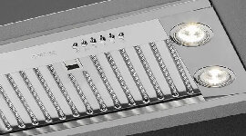 LED lights bring an entirely new lighting concept to rangehoods, guaranteeing glare-free cooktop illumination. LED lights also use less electricity than conventional lights and last an (appliance) lifetime.