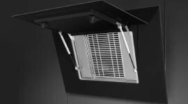 Rising vapours are led outwards along the perimeter areas of the plate, sucked to the outer edges, and directed to the filter located behind. At the edge of the rangehood, a high airflow velocity is created to ensure that vapours cannot escape laterally, optimising the performance of the rangehood.