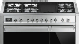Each oven cavity has been tailored for specific cooking needs. The main and secondary ovens feature Smeg's signature Ever Clean enamel, triple-glazed doors, and fan-assisted or thermoseal cooking, ensuring optimal heat distribution and easy maintenance. The third auxiliary oven provides additional capacity and a tilting electric grill for added convenience. Vapour Clean technology across all cavities allows effortless cleaning by softening grease and food residue using steam.