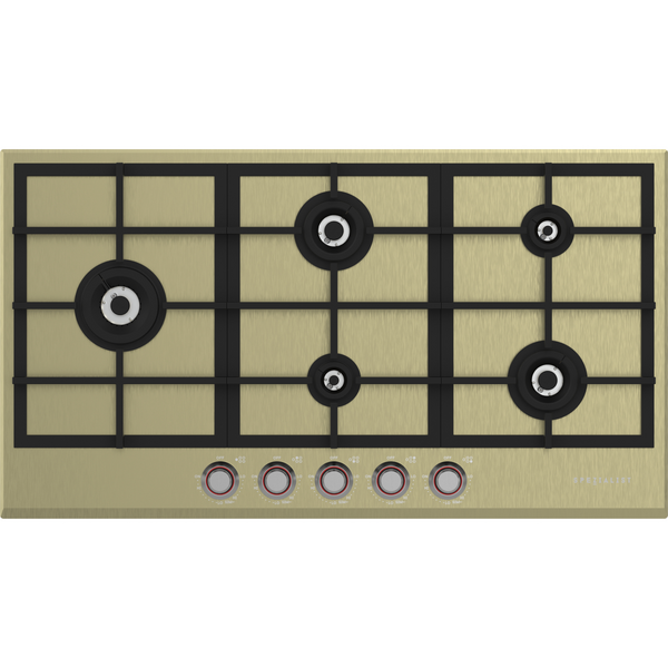 Spezialist 94cm Natural Gas Cooktop 5 Burner Stainless Steel Plate Brass Surface S30945SPBBRNG