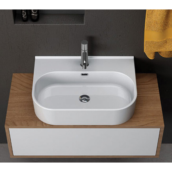 Studio Bagno Syesis 70 Bench or Wall Basin with 1 Tap Hole - Gloss White SYN70-1 SYN701