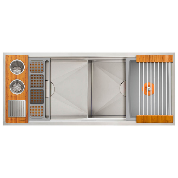 The Galley Ideal WashStation 4D Double Bowl Wash Kit Bamboo IWA-4-D-BA