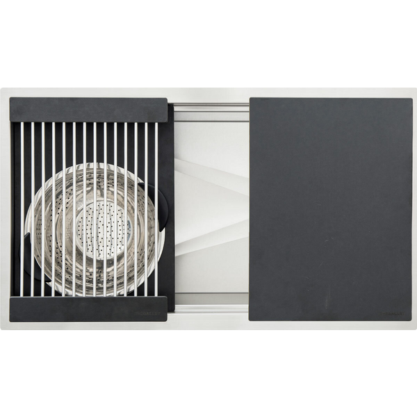 Stylish 16-Gauge Stainless Steel Fabricated in one piece with the highest quality stainless steel and TrueEdge Design. Angel Finish Custom hand-crafted finish for superior wear and easy maintenance. Hand-Crafted in the USA Each Galley is skillfully manufactured and carefully inspected in America. Versatile Double Tier Design Functionality on a whole new level! Accessories slide above and below each other on upper and lower tiers. Reversible Basin with Single Side Drain Maximizes usable storage under the sink. The sink can be installed with a right or left drain location. Drain Cover Our round Drain Cover conceals the drain while still allowing water to flow freely into the drain.