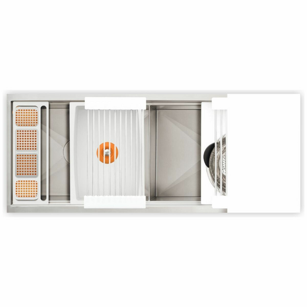 The Galley has created a whole new category of kitchen appliance. The Ideal Work & WashStation is the ultimate culinary system. Each Galley is hand-crafted in the USA in four sizes and four colour finishes. In The Galley, you can chop, strain and mix easily and ergonomically to prepare a meal and efficiently transition to cooking with a cooktop nearby. Using various Serving Boards, quickly and conveniently transform your ‘Prepare and Cook’ station into a serve station, or set out drinks and hors d’oeuvres to create an ideal entertain station. This Designer White Resin is the perfect choice when white is the right design choice for your kitchen. This classic, 5/8” thick material is dishwasher safe, indoor and outdoor/UV rated, easy on your knives, and is very easy to maintain. These inclusive, versatile kitchen units include nine culinary/wash tools to ensure you have everything at your fingertips - from prep to clean up.