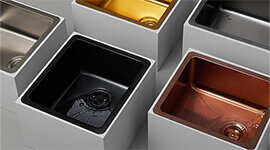 Titan uses spectrographic colour matching to ensure sinks, taps, wastes, and accessories align accurately, eliminating visible variation and creating a consistent finish across the kitchen.
