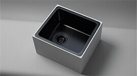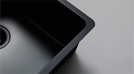 Titan’s matte black PVD features a non-brushed matte surface, delivering uniform colour depth without visible grain or directional marking. This approach produces a cleaner, more consistent finish than traditional brushed colour sinks.
