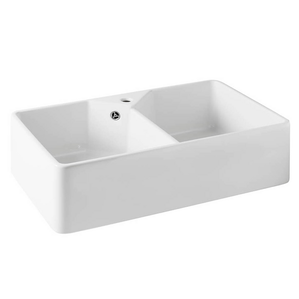 Turner Hastings Cuisine 86 x 50 Double Bowl Fine Fireclay Sink with Taphole Gloss White CUD86FS