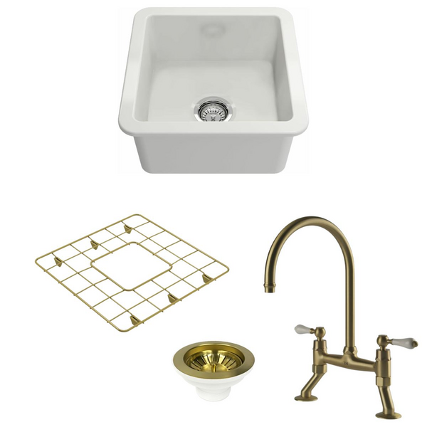 Turner Hastings Cuisine 46 Sink Pack with Brushed Brass Ludlow Bridge Mixer Tap and Accessories PKG044