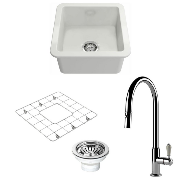 Turner Hastings Cuisine 46 Sink Pack with Chrome Ludlow Pull Out Mixer Tap and Accessories PKG048
