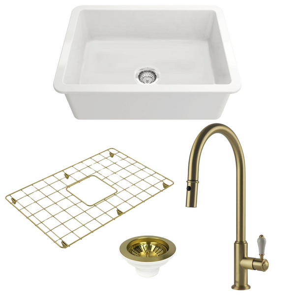 Turner Hastings Novi 75 Butler Sink Pack with Brushed Brass Naples Pull Out Mixer Tap and Accessories PKG021