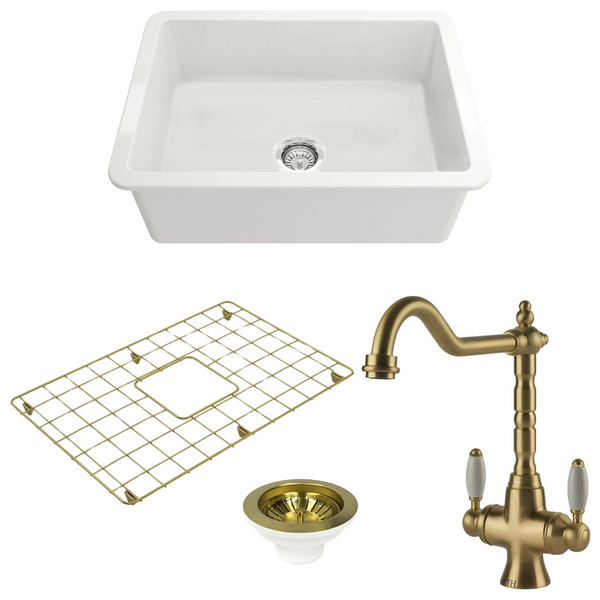 Turner Hastings Novi 50 Butler Sink Pack with Brushed Brass Naples Pull Out Mixer Tap and Accessories PKG033