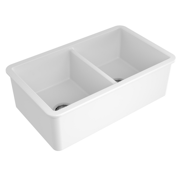 Turner Hastings Cuisine 86 x 50 Double Bowl Fine Fireclay Sink with Taphole Gloss White CUD86FS