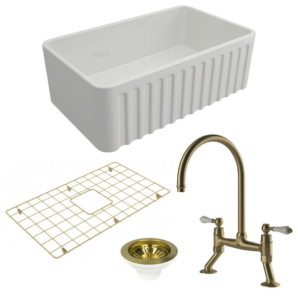 Turner Hastings Novi 75 Butler Sink Pack with Brushed Brass Ludlow Bridge Mixer Tap and Accessories PKG020