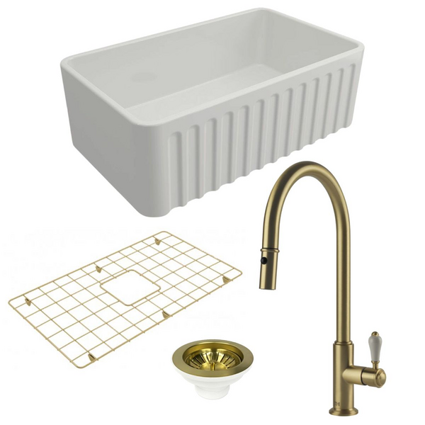 Turner Hastings Novi 50 Butler Sink Pack with Brushed Brass Naples Pull Out Mixer Tap and Accessories PKG033