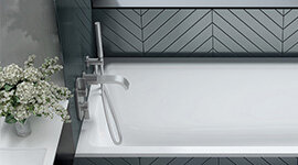 At the heart of every Kaldera bath lies Victoria + Albert’s signature Quarrycast material, which is a unique blend of finely milled Volcanic Limestone and high-quality resins. This innovative composite is cast as a single piece, delivering remarkable strength without excess weight. Naturally white and beautifully glossy, Quarrycast resists stains, scratches, and damage from everyday bath oils, creating a surface that looks and feels pristine over time.