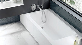 From the subtle warmth of the surface to the reassuring solidity beneath you, every detail of the Victoria + Albert Kaldera Bath works in harmony to transform your bathroom into a haven of relaxation and style.