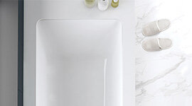 Polished by hand to a luminous sheen, Victoria + Albert’s glossy Quarrycast finish enhances both interior and exterior surfaces. The non-porous surface of Quarrycast makes cleaning almost effortless. A simple wipe-down is all it takes to maintain its pristine appearance.