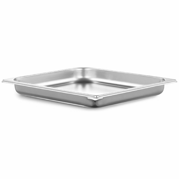 Cooking tray made of easy-to-clean chromium steel with lip. Used to cook meat and vegetables in liquids, their own juice or as a drip tray. The 2/3 cooking tray greatly simplifies handling when refilling.