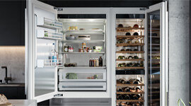The fridge and freezer compartments are systematically organised with a considered layout that allows you to quickly find what you need. The patented InfinityShelf lets you adjust the different levels with ease so you can maximise your space. SoftTelescope drawers can be fully extended and feature self-closing runners with a soft-close mechanism, giving you effortless access to your food and beverages. Perfectly preserve your items after a trip from the supermarket using the Quick Cooling and Quick Freezing settings so they can be stored at the optimal temperature to keep food fresher for longer. The NoFrost function can help you save time and effort by making the defrosting process automatic, set off at regular intervals for your convenience. When you’re entertaining or simply need additional fridge space, you can convert the freezer section as an additional fridge compartment by activating V-ZUG’s innovative MonoFridge mode.