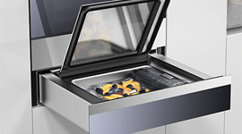 This vacuum drawer offers three levels of vacuum-sealing. This enables you to vacuum-seal fragile items like soft fruits to firmer foods such as hard cheese. This helps to save space and preserve your foods for longer. You can even seal half-finished foods such as a packet of nuts to keep them fresh for later. For home cooks who want to attempt a new cooking technique, you can cook food slowly at low temperatures in vacuum-sealed bags to create a delectable culinary experience at home. The sous-vide method, known as Vacuisine at V-ZUG, is sure to impress even the most discerning dinner guests.