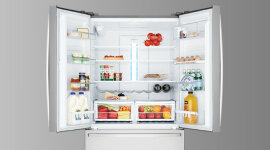 This flexible fridge can be adapted to your needs thanks to the FlexStor and FlexSpace features. You can fit items large and small and maximise your fridge space by adjusting the height and position of the door bins. Don’t cry over spilt milk because the SpillSafe shelves stop spills from spreading. With the French door, you can open your fridge and see everything at a glance—ideal for when you need to find an ingredient while cooking. You can enjoy access to continuous filtered water via the external dispenser and always have ice on hand thanks to the internal automatic ice maker.