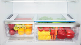 The FreshSeal crispers in the fridge compartment are the ideal place to store your fruits and vegetables. Automatic humidity control ensures the optimal environment for keeping your groceries fresher for longer. Designed with ease-of-use in mind, the crisper bins glide open and closed effortlessly.