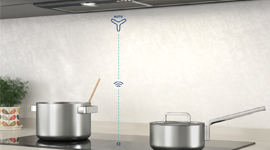 For a more connected kitchen, the Hob2Hood system enables a compatible cooktop to synchronise wirelessly with this rangehood. The rangehood automatically turns on when you start the cooktop and adjusts fan speed and airflow while you’re cooking.