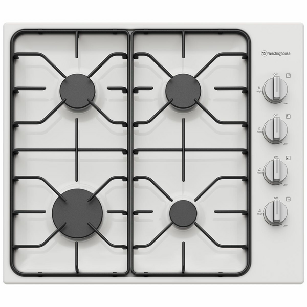 Westinghouse 60cm 4 Burner Natural Gas Cooktop White Enamel WHG640WC