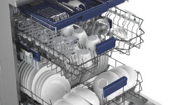 Engineered for convenience, the AutoDoor feature opens automatically at the end of the cycle, enhancing drying performance by allowing fresh air to circulate. Inside, the adjustable upper basket makes room for tall pots or delicate glassware—even when fully loaded—while a sliding third cutlery tray streamlines organisation and access.