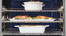 Take the guesswork out of cooking with Gourmet Mode. From prime rib to lasagna or a double-crusted pie, this feature guides you with the ideal rack position, selects the correct cooking mode, and adjusts the temperature automatically. Simply sit back and enjoy perfectly prepared dishes every time.