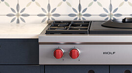 The burners in Wolf gas cooktops are equipped with a flame-sensing re-ignition system, automatically restoring the flame if it ever goes out. This feature adds peace of mind while maintaining consistent heat. This feature is particularly handy when juggling multiple dishes or cooking at low temperatures for extended periods.