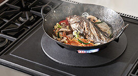 Elevate your kitchen to a place of performance and poise, where every pan movement becomes part of the rhythm. The porcelain-coated cast-iron wok ring securely cradles a traditional round-bottom wok, granting effortless motion and allowing you to tilt, toss and stir like a seasoned chef.