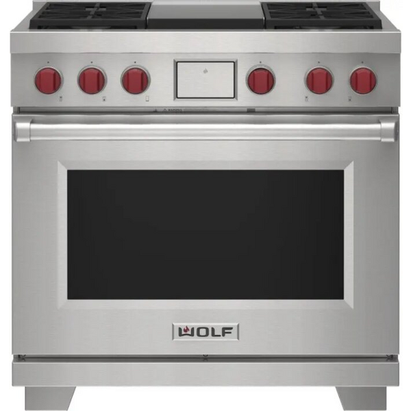 WOLF 91cm Freestanding Dual Fuel Oven/Stove with Teppanyaki - LPG Gas ICBDF36450GSPLPG