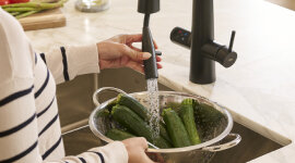 When using the mixer tap, you can utilise the pull-out and spray functions to make it easier to direct the water where you need it—perfect for rinsing veggies and washing large pots.