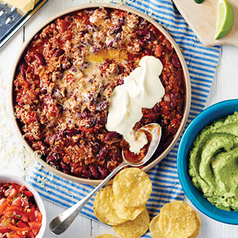 Add the tinned tomatoes and kidney beans, stir to combine then simmer for 10-12 minutes.